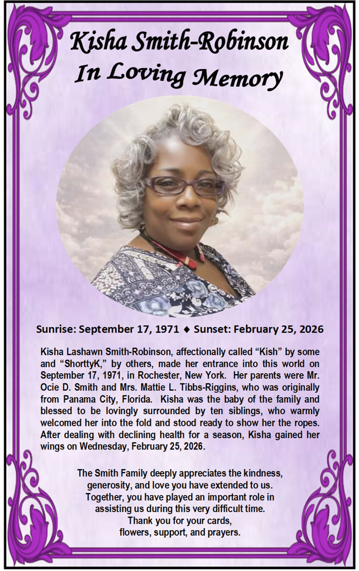 We are especially thankful to Minister Jones and the North Greece Congregation, whose kindness and hospitality made it possible for us to come together in remembrance and worship. Your servant hearts truly glorified the Lord and comforted all who attended.