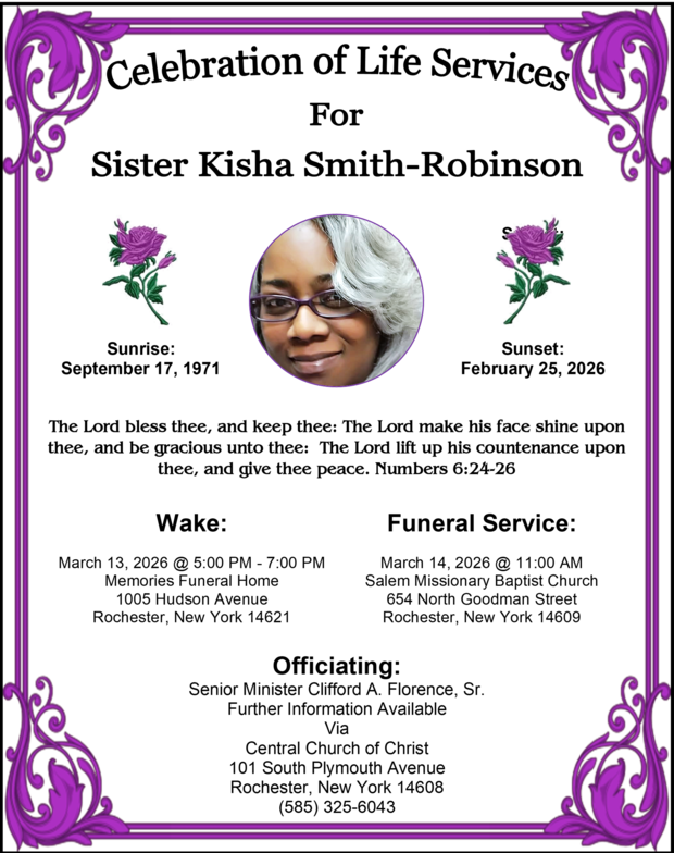We are especially thankful to Minister Jones and the North Greece Congregation, whose kindness and hospitality made it possible for us to come together in remembrance and worship. Your servant hearts truly glorified the Lord and comforted all who attended.